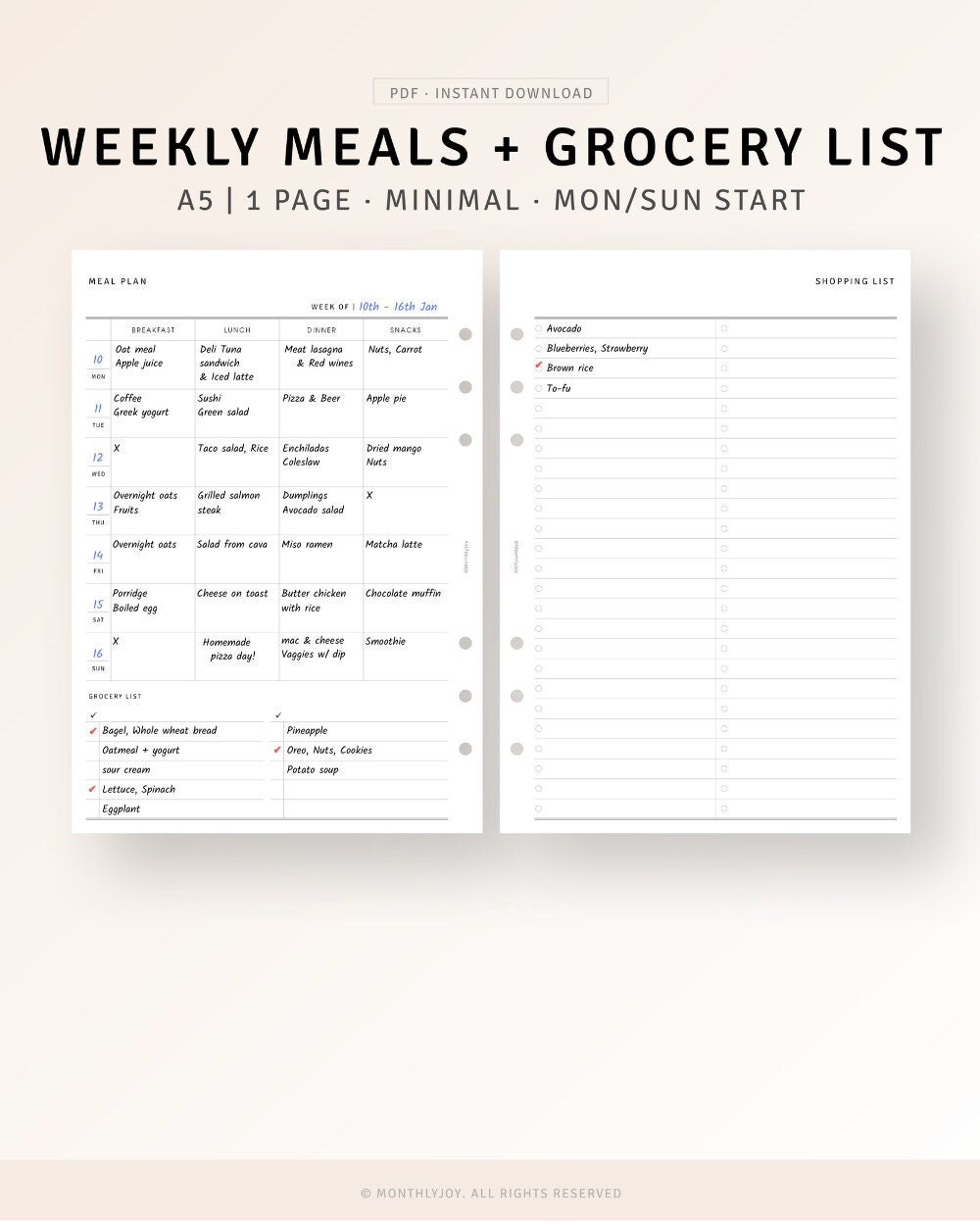 Meal Planner Printable A5 Planner Inserts Weekly Food Diary Etsy